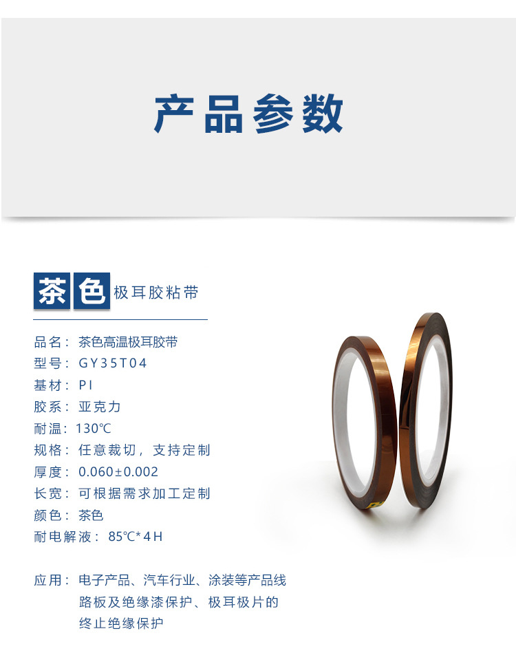 厂家定制茶色极耳胶带 电路板极耳胶带锂电池用胶带 茶色高温胶带